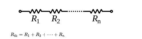 Các điện trở mắc nối tiếp có giá trị tương đương bằng tổng các điện trở thành phần cộng lại.